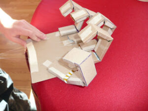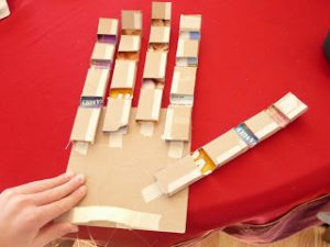 He made this hand out of cardboard and fishing wire. Stay tuned this could turn into a full robot!!