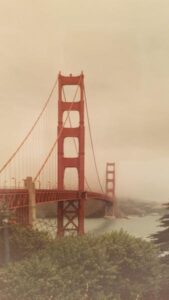 “Bryony, from South Africa, and I walked from the hostel at Fort Mason to the Golden Gate bridge. Just like in all the pictures you see, it was characteristically misty. We took a bus to Fillmore Street and California Street to check out some clothing stores. It feels very European here and reminds me of many places in London, only with less rain!”